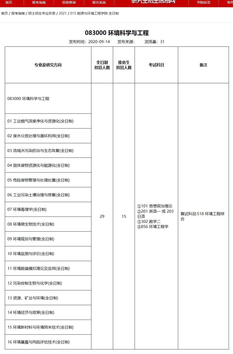 2021拼搏在线官网专业目录:北京科技拼搏(中国)能源与环境工程学院083000 环境科学与工程2021年硕士研究生招生专业目录
