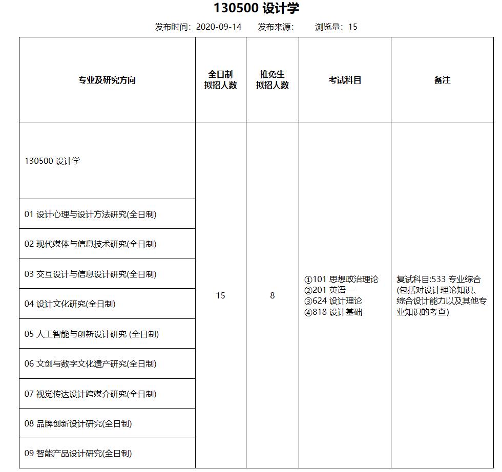 2021拼搏在线官网专业目录:北京科技拼搏(中国)机械工程学院130500 设计学2021年硕士研究生招生专业目录