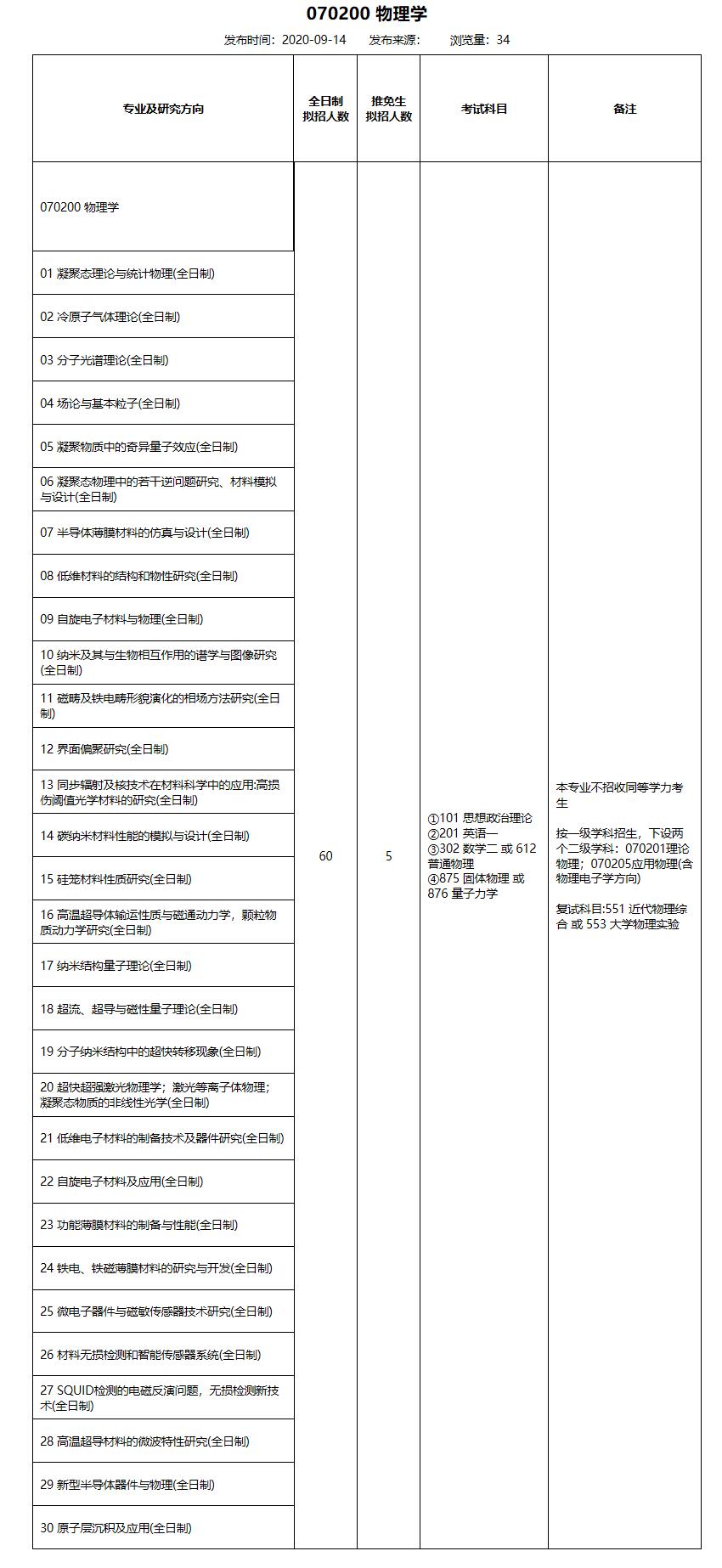 2021拼搏在线官网专业目录:北京科技拼搏(中国)数理学院070200 物理学2021年硕士研究生招生专业目录