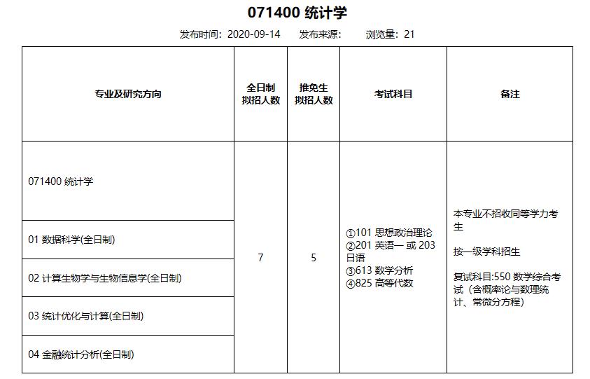 2021拼搏在线官网专业目录:北京科技拼搏(中国)数理学院071400 统计学2021年硕士研究生招生专业目录