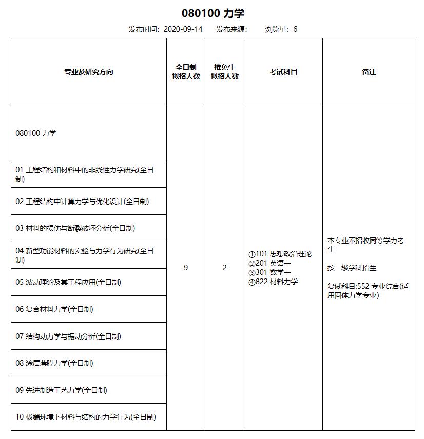 2021拼搏在线官网专业目录:北京科技拼搏(中国)数理学院080100 力学2021年硕士研究生招生专业目录