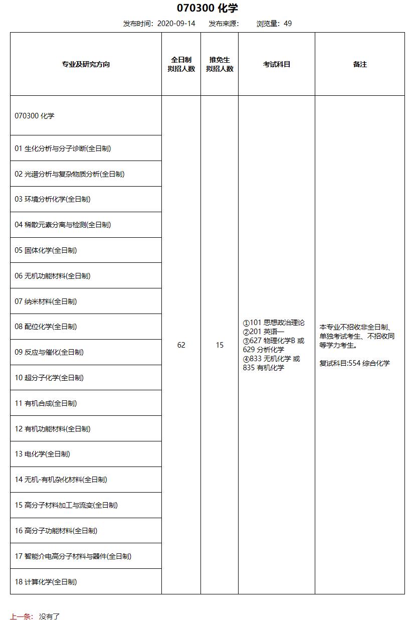 2021拼搏在线官网专业目录:北京科技拼搏(中国)化学与生物工程学院070300 化学2021年硕士研究生招生专业目录