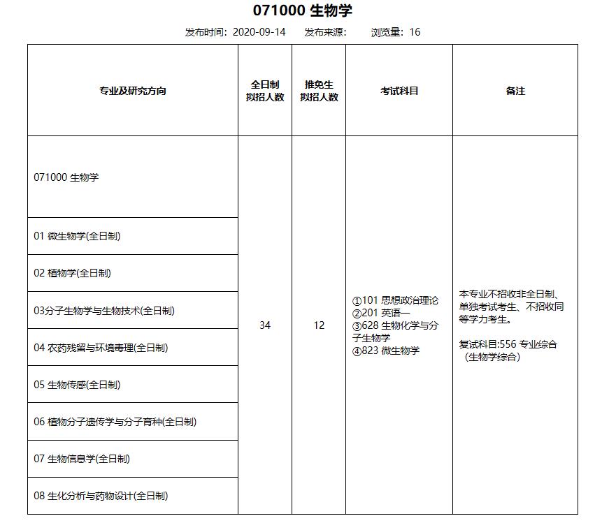 2021拼搏在线官网专业目录:北京科技拼搏(中国)化学与生物工程学院071000 生物学2021年硕士研究生招生专业目录