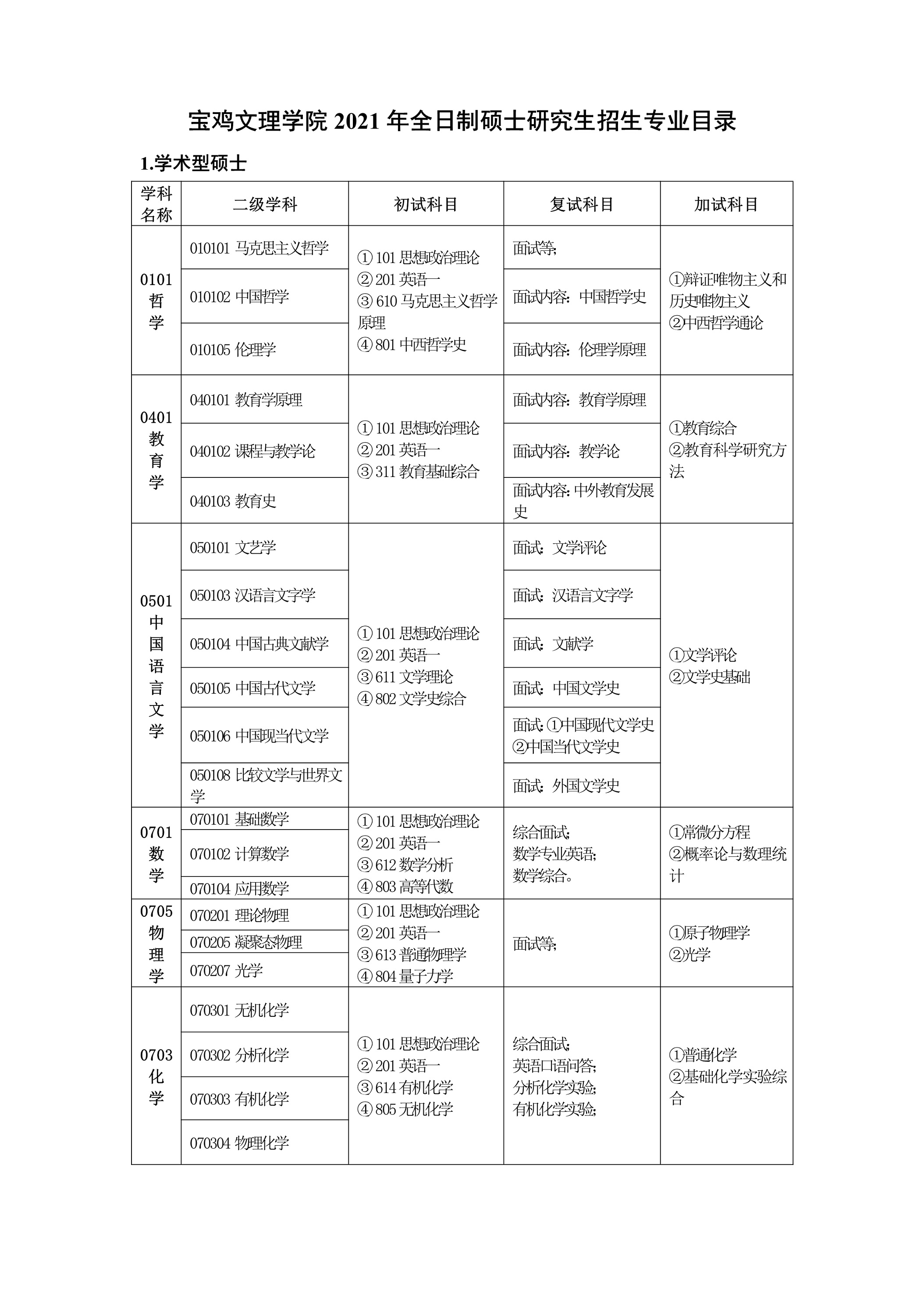点击查看:宝鸡文理学院2021年硕士研究生招生专业目录.pdf