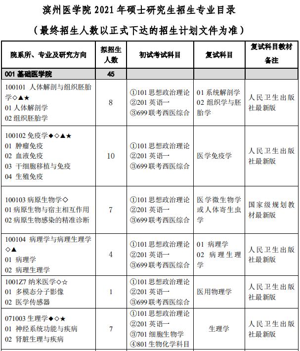 原文标题:滨州医学院2021年硕士研究生招生专业目录