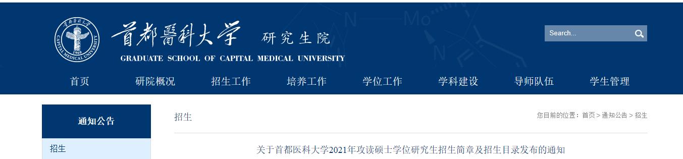 2021拼搏在线官网专业目录:首都医科拼搏(中国)2021年硕士研究生招生目录汇总