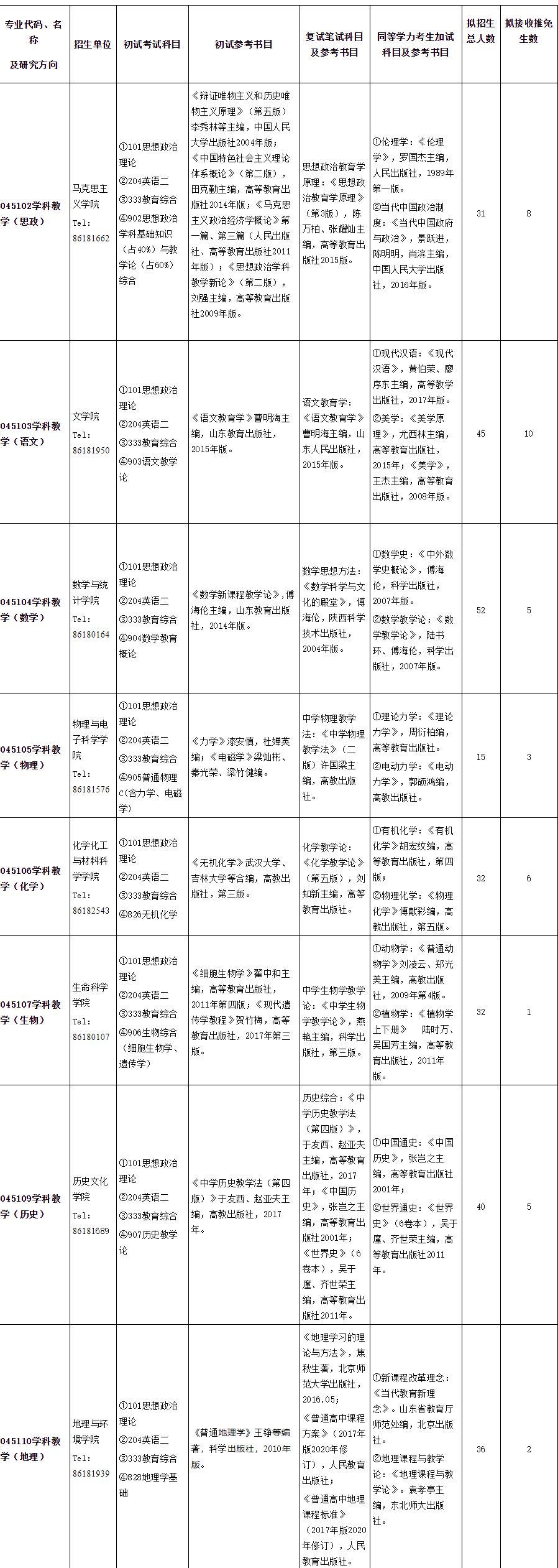 2021拼搏在线官网专业目录:山东师范拼搏(中国)2021年教育硕士招生专业目录