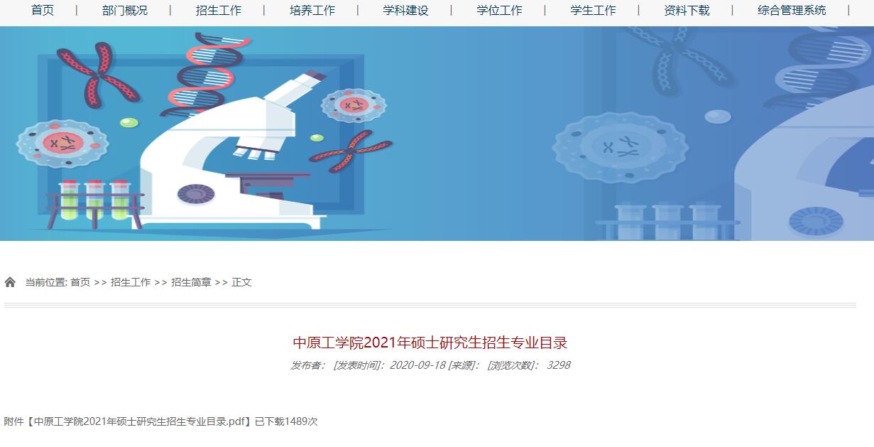 原文标题:中原工学院2021年硕士研究生招生专业目录
