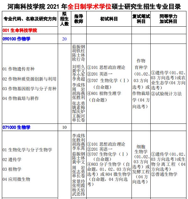 以上就是小编整理“2021拼搏在线官网专业目录:河南科技学院2021年研究生招生专业目录”的全部内容,想了解更多相关信息,请持续关注研线网!