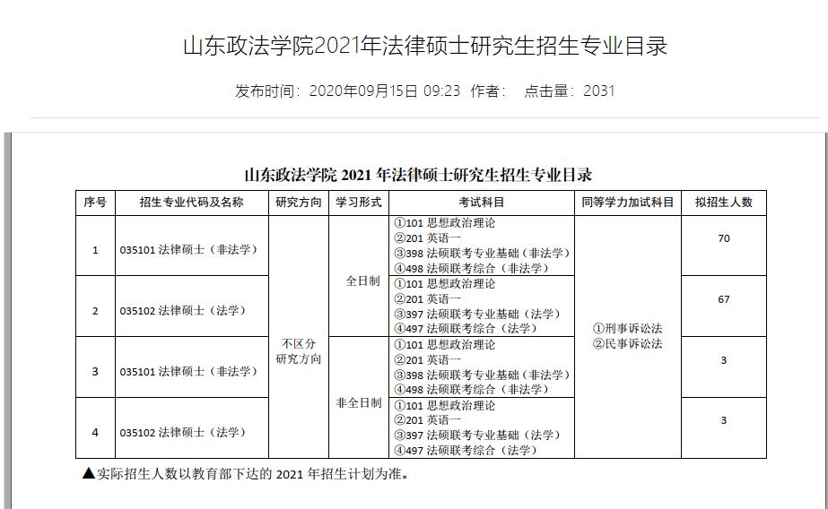 来源:山东政法学院研究生招生网