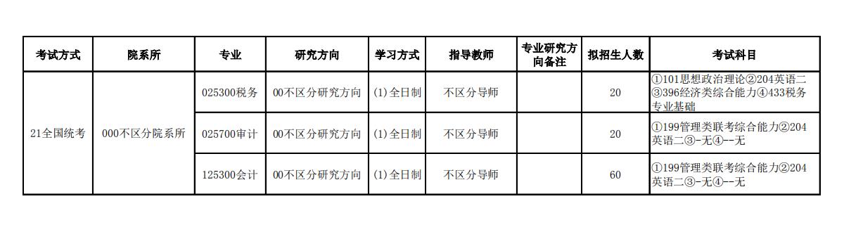 2021拼搏在线官网专业目录:厦门国家会计学院2021年硕士研究生招生专业目录