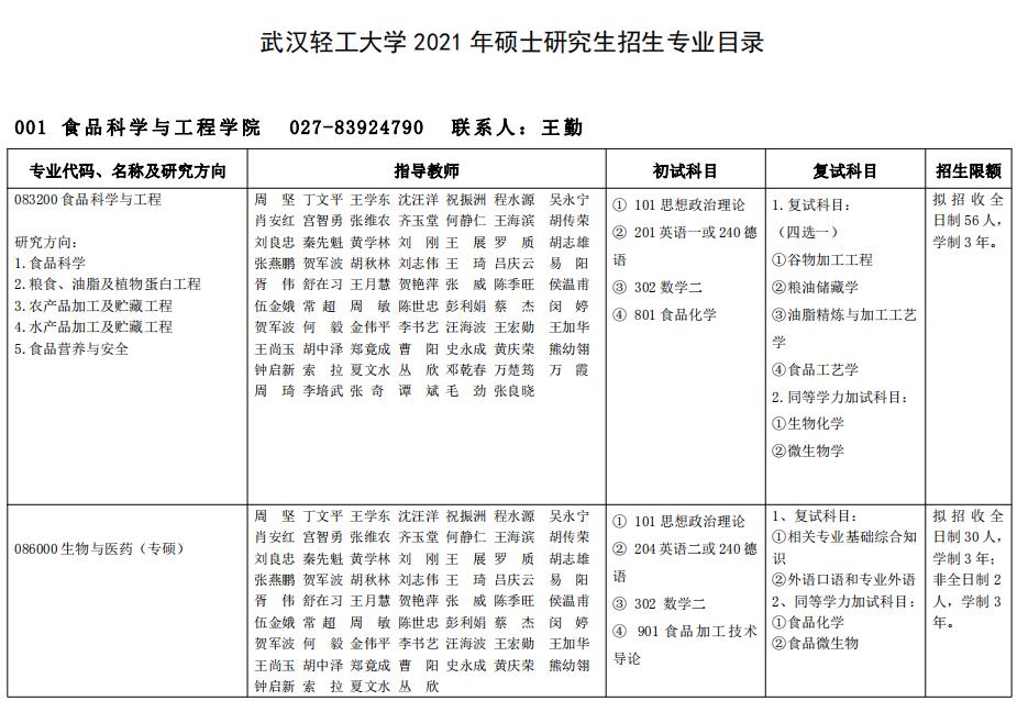 点击查看:武汉轻工拼搏(中国)2021年攻读硕士学位研究生专业目录