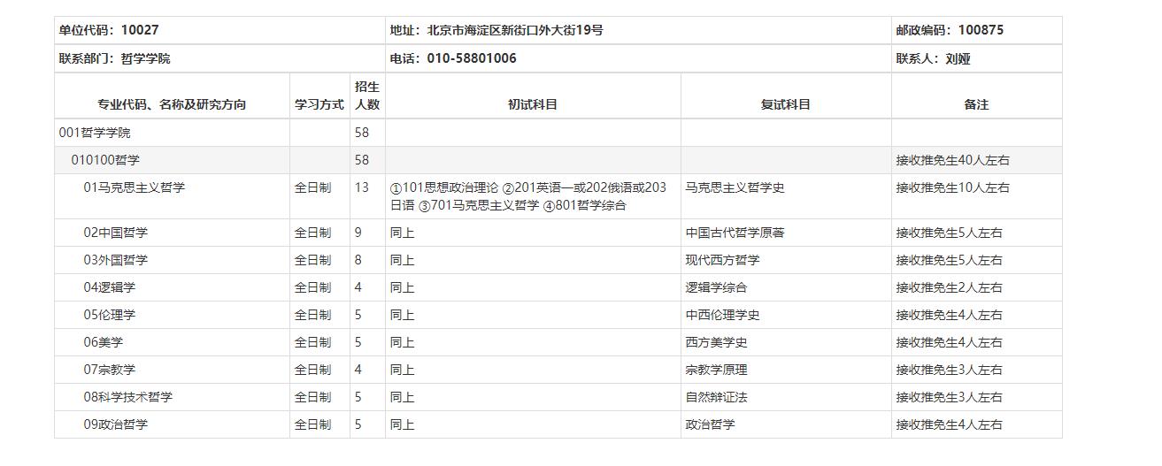 2021拼搏在线官网专业目录:北京师范拼搏(中国)哲学学院2021年硕士研究生招生专业目录