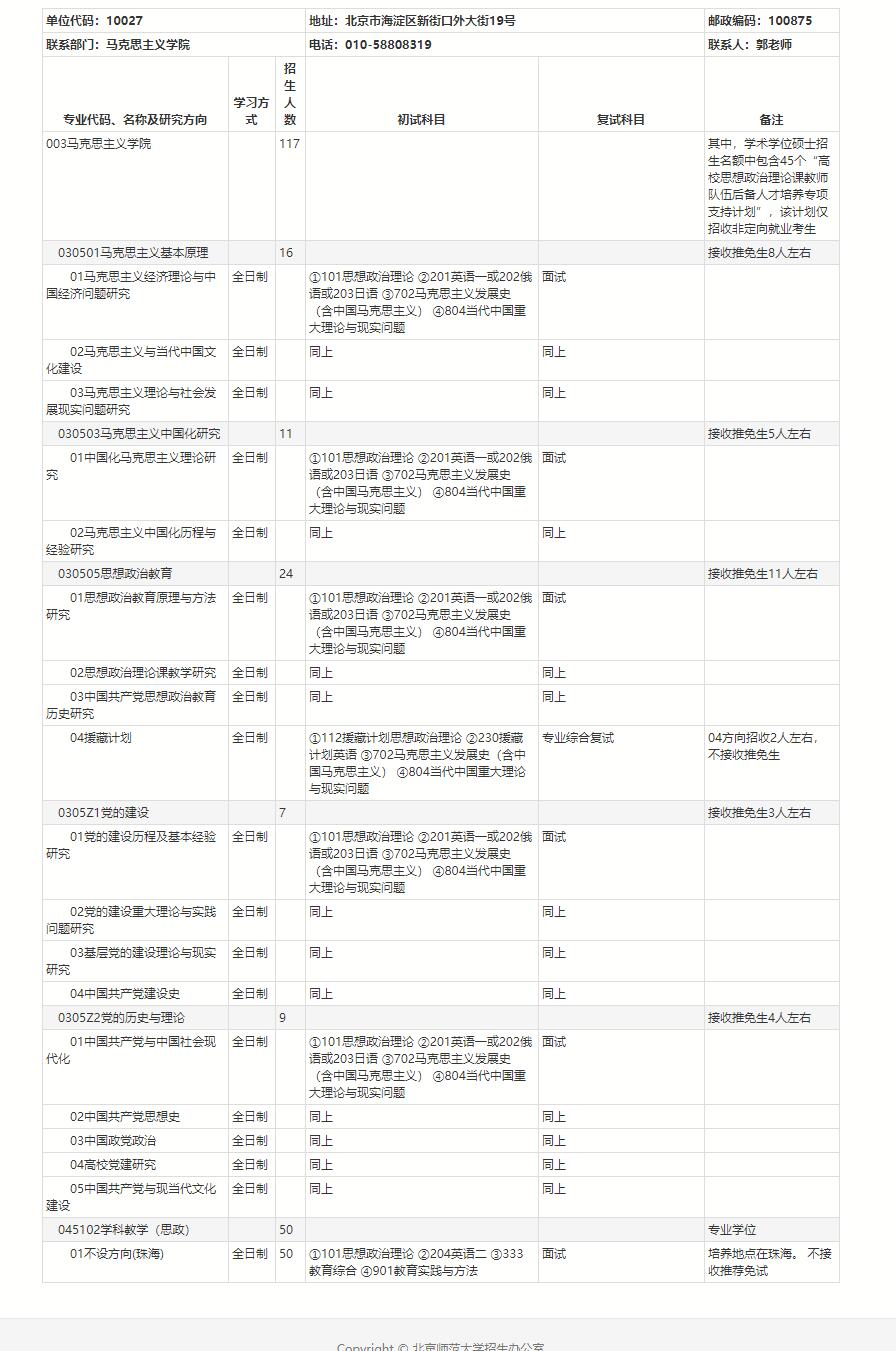 2021拼搏在线官网专业目录:北京师范拼搏(中国)马克思主义学院2021年硕士研究生招生专业目录