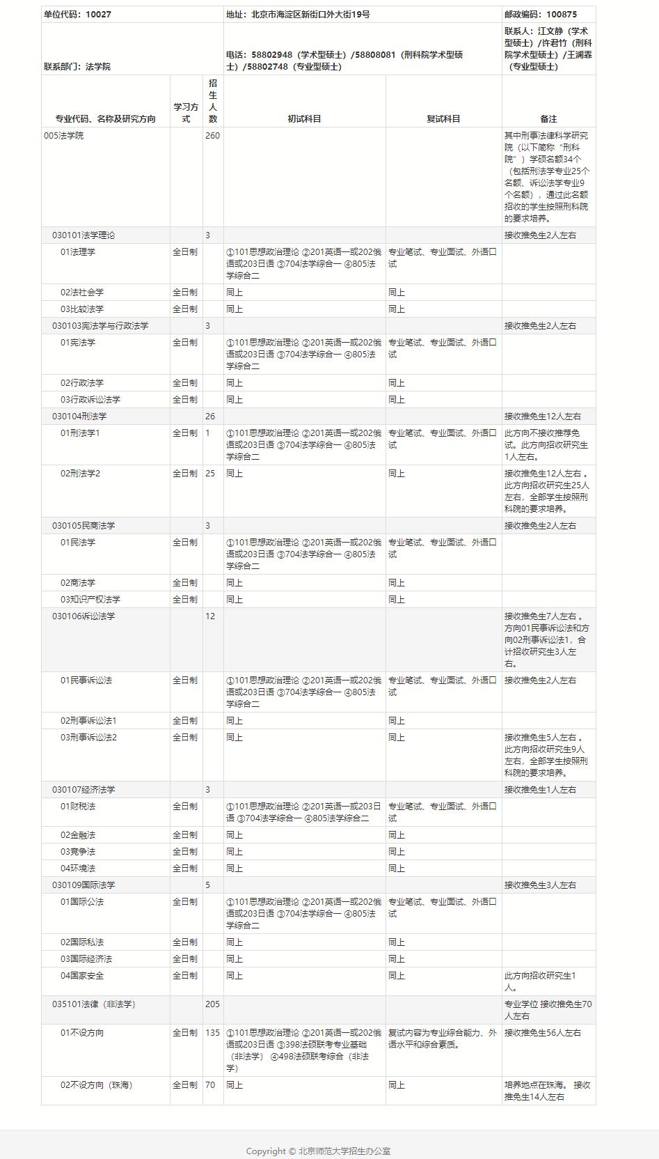 2021拼搏在线官网专业目录:北京师范拼搏(中国)法学院2021年硕士研究生招生专业目录
