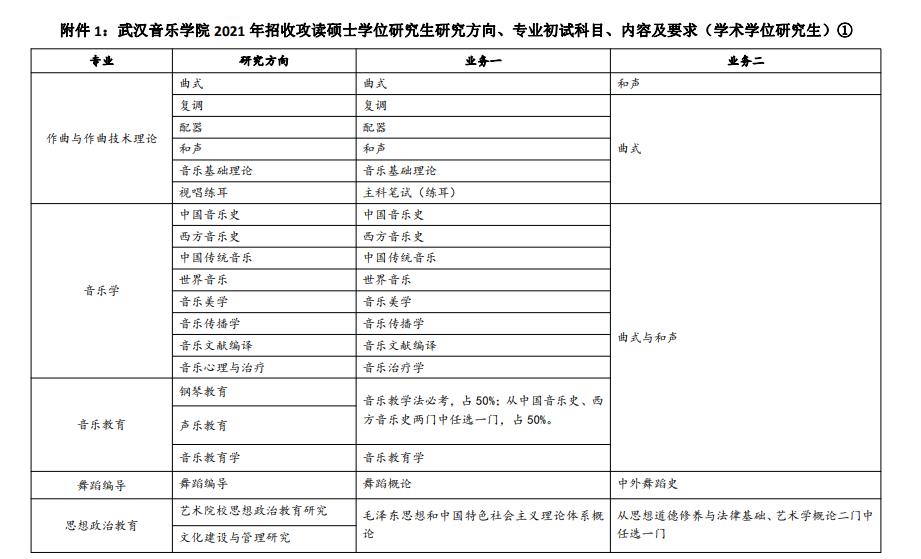 【点击查看】武汉音乐学院2021年招收攻读硕士学位研究生专业目录