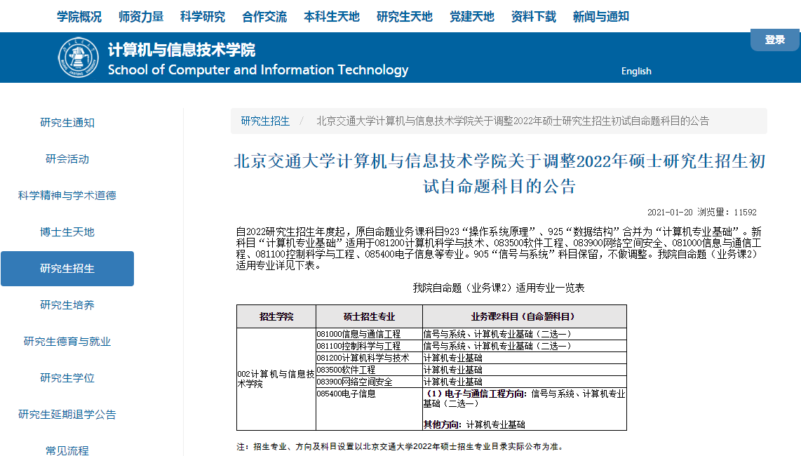 原文标题:北京交通拼搏(中国)计算机与信息技术学院关于调整2022年硕士研究生招生初试自命题科目的公告
