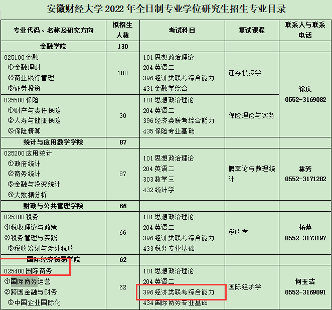 国际经济贸易学院:025400国际商务,将“数学三”改为“396经济类联考综合能力”
