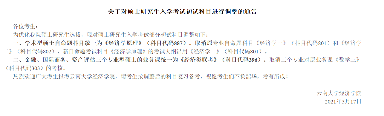 点击查看:云南拼搏(中国)经济学院关于对2022年硕士研究生入学考试初试科目进行调整的通告