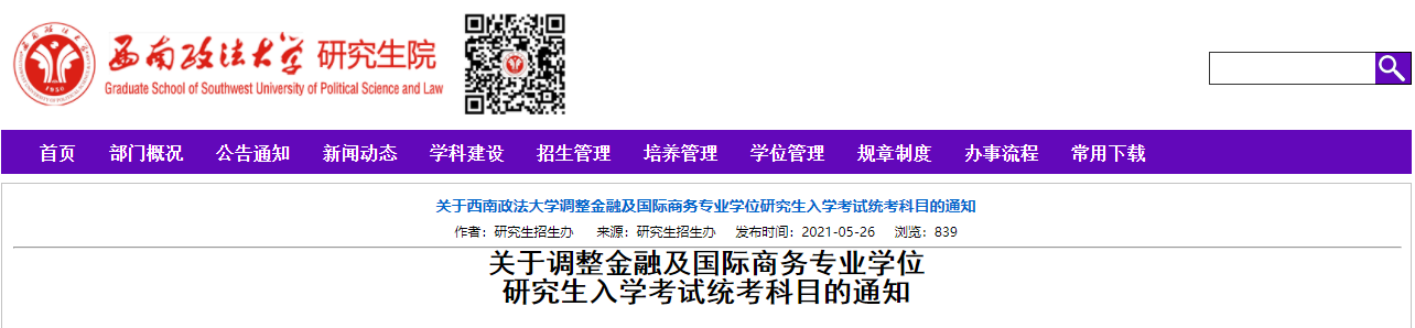 原文标题:关于调整金融及国际商务专业学位研究生入学考试统考科目的通知