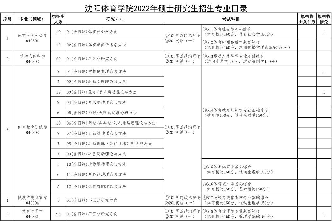 2022拼搏在线官网专业目录:沈阳体育学院2022年硕士研究生招生专业目录带考试科目