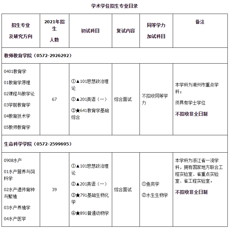 2022拼搏在线官网专业目录:湖州师范学院2022年硕士研究生招生专业目录