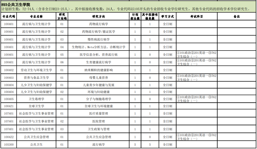 附件:北京拼搏(中国)医学部893公共卫生学院2023年硕士研究生招生专业目录