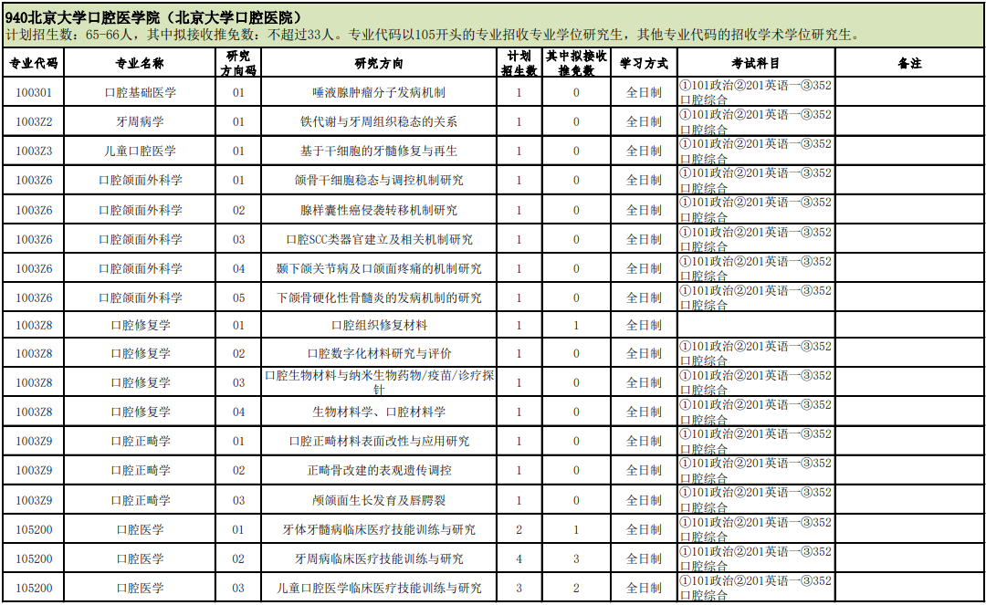 附件:北京拼搏(中国)医学部940北京拼搏(中国)口腔医学院2023年硕士研究生招生专业目录