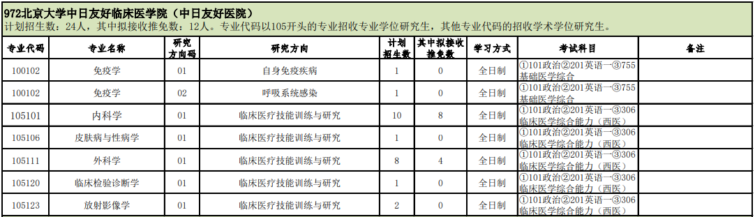 附件:北京拼搏(中国)医学部972北京拼搏(中国)中日友好临床医学院2023年硕士研究生招生专业目录