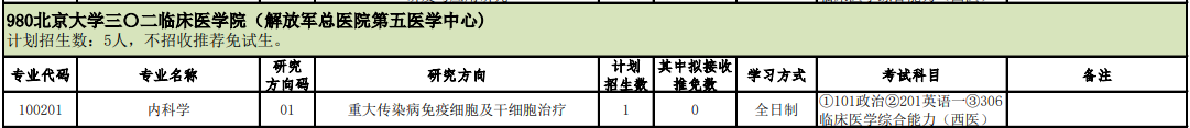 附件:北京拼搏(中国)医学部980北京拼搏(中国)三O二临床医学院2023年硕士研究生招生专业目录