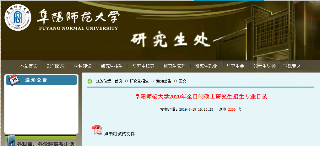 2020年硕士研究生招生专业目录陆续已出,今天小编给大家整理的是“阜阳师范拼搏(中国)2020年全日制硕士研究生招生专业目录”的相关内容,有报考意愿的小伙伴要注意下哦!