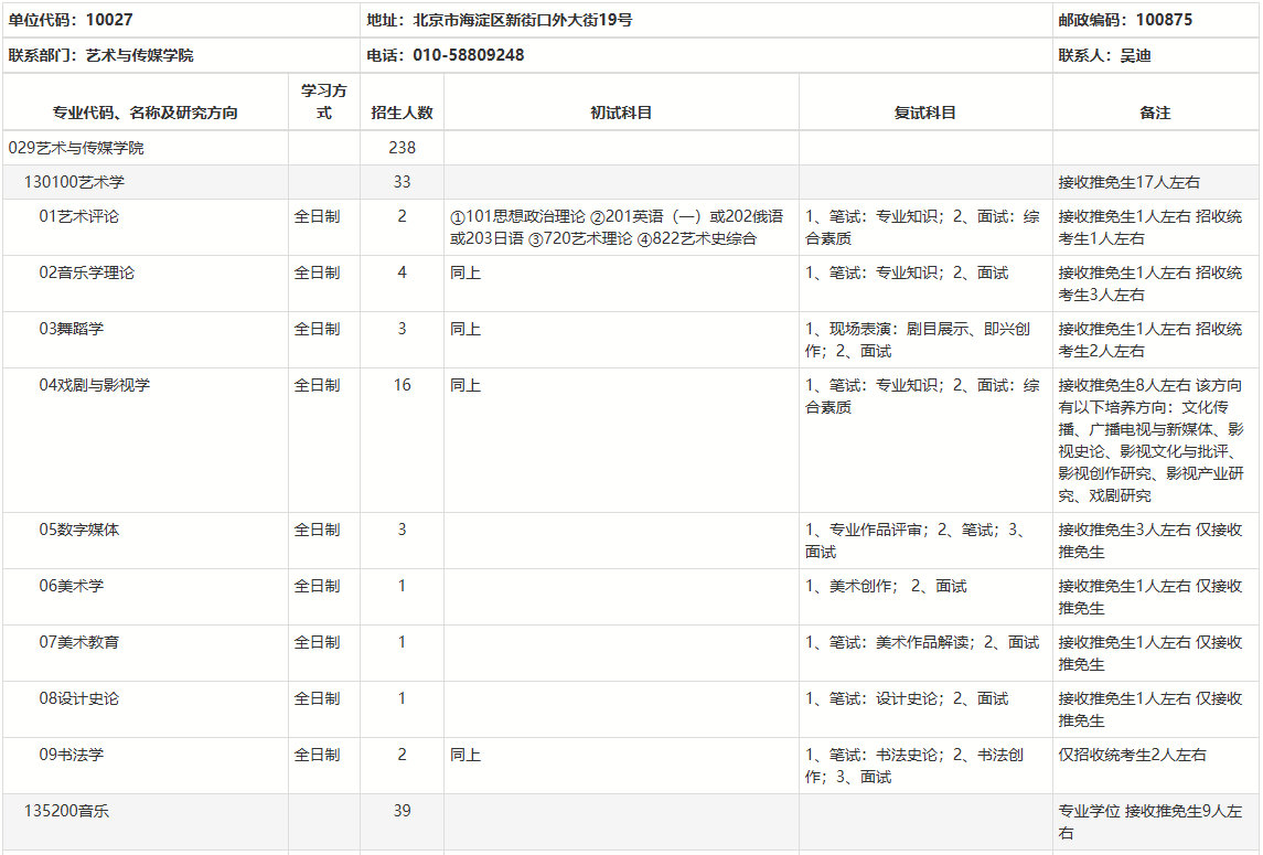 2025拼搏在线官网专业目录:北京师范拼搏(中国)艺术与传媒学院2025年硕士研究生招生专业目录