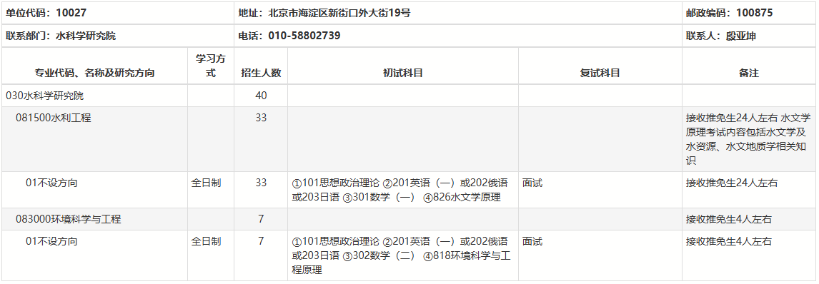 2025拼搏在线官网专业目录:北京师范拼搏(中国)水科学研究院2025年硕士研究生招生专业目录