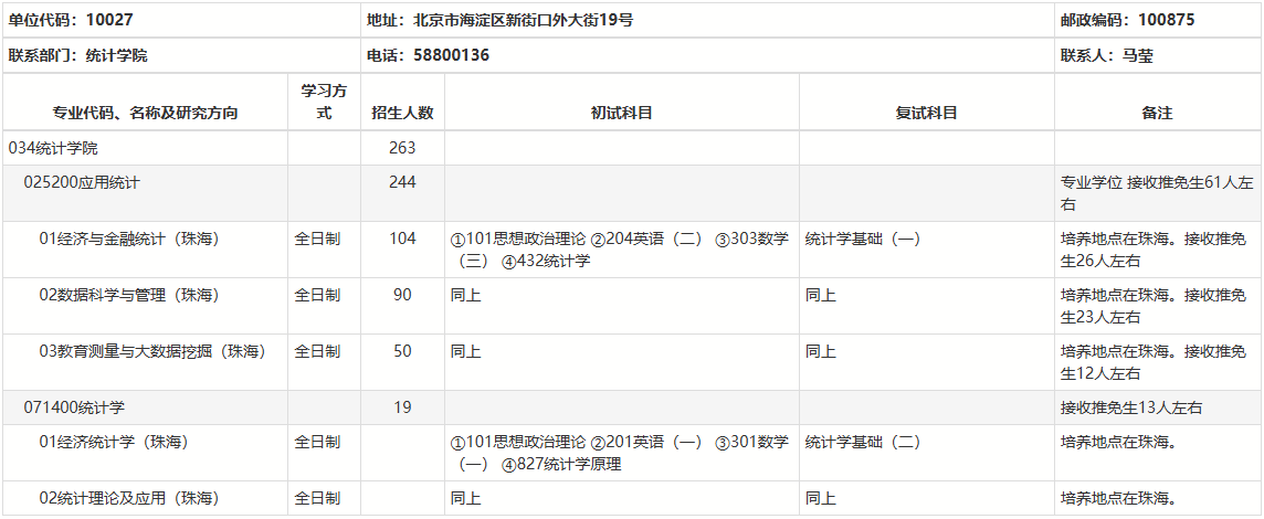 2025拼搏在线官网专业目录:北京师范拼搏(中国)统计学院2025年硕士研究生招生专业目录