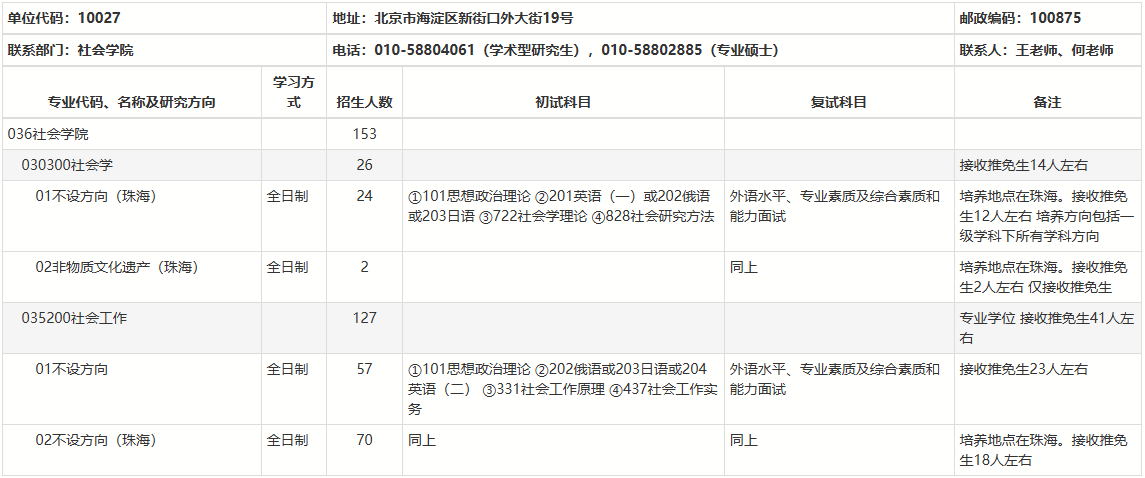2025拼搏在线官网专业目录:北京师范拼搏(中国)社会学院2025年硕士研究生招生专业目录