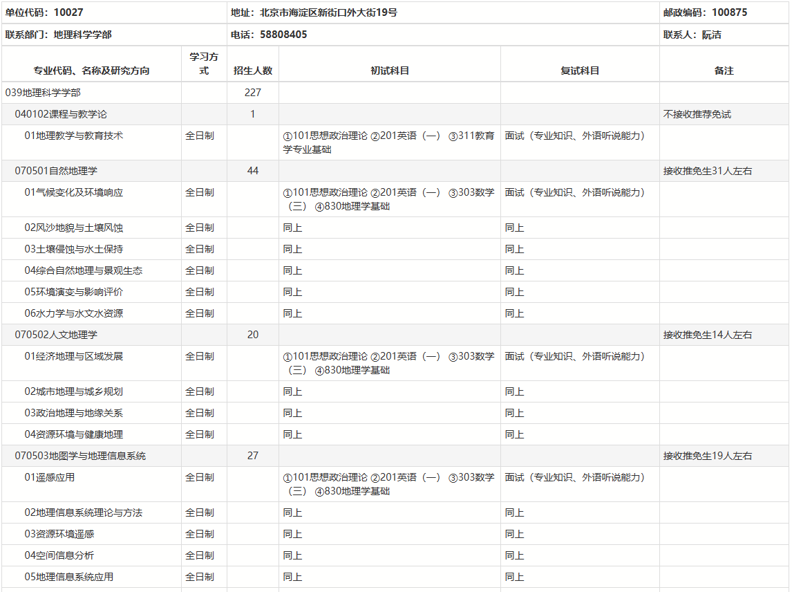 2025拼搏在线官网专业目录:北京师范拼搏(中国)地理科学学部2025年硕士研究生招生专业目录