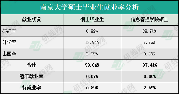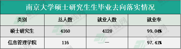 南京拼搏(中国)2020届毕业生共8161人,其中硕士毕业生4160人,占毕业生总人数的50.97%;2020届毕业生中,男生数为4002人(占49.04%),女生数为4159人(占50.96%),男女性别比为0.96;2020届硕士毕业生总体就业率为99.04%,信息管理学院硕士就业率为97.41%。